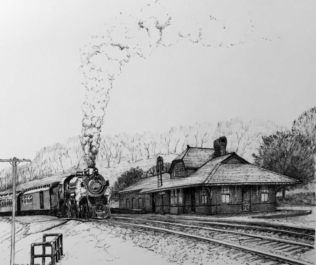 The Western Maryland series includes 64 prints of original drawings and most include site histories. Each image is approximately 7 ¾” x 9 ¼” and all are suitable for framing. The matted/unmatted prints are sold individually. Individually colored black and white prints may be special ordered.